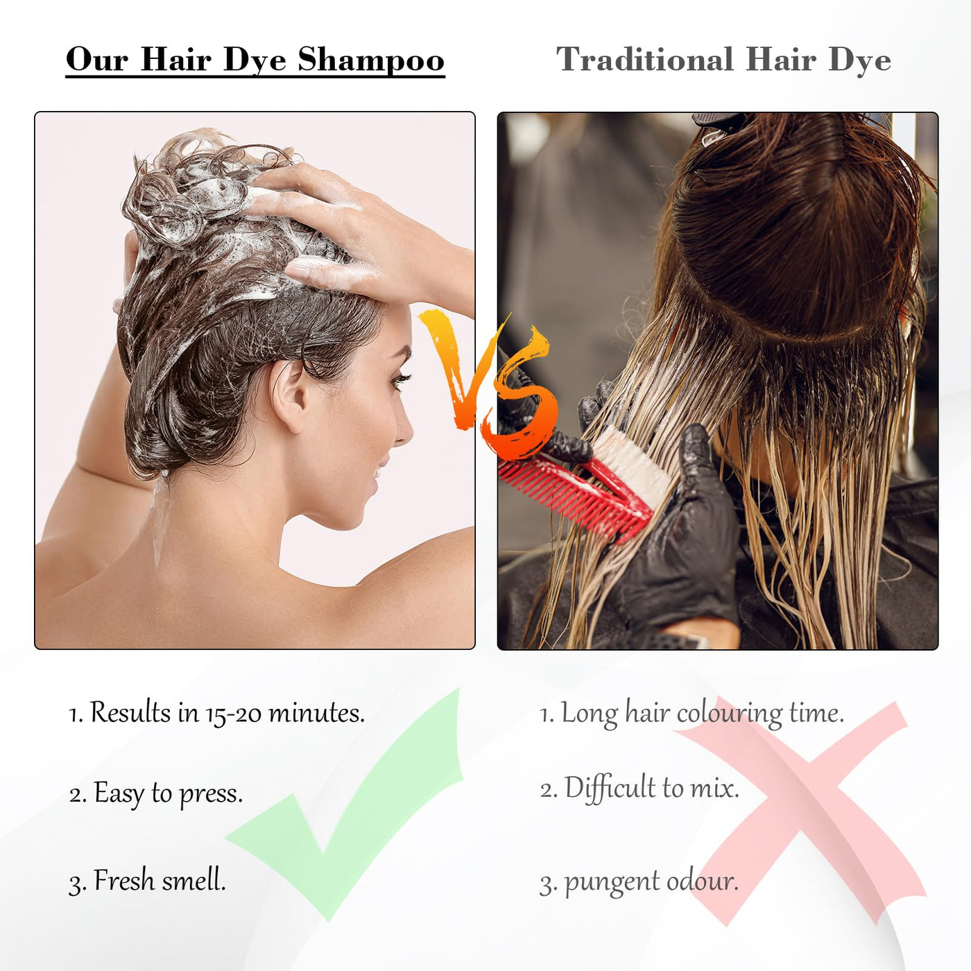 KAISASA Black Hair Dye Shampoo 3 in 1, Hair Color Shampoo for Cover Grey Hair, Natural with Herbal Ingredient for Men and Women (Black)